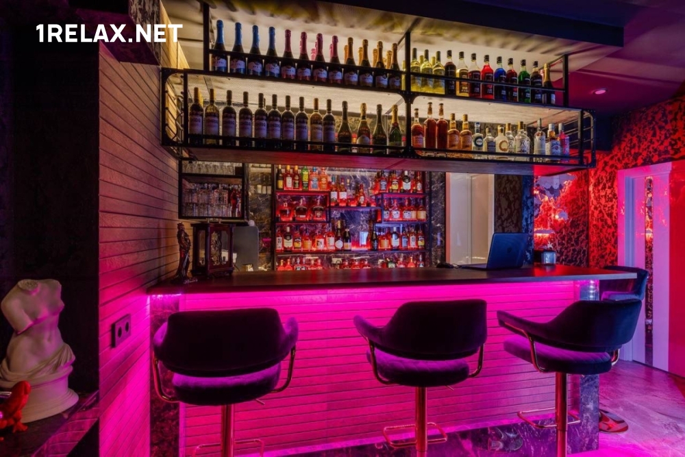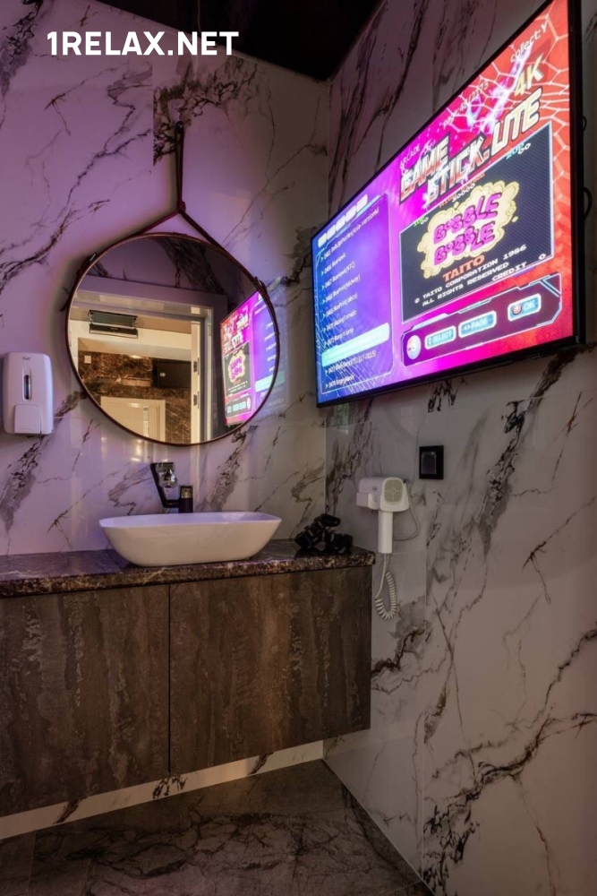 Четыре комнаты массажного салона радуют глаз дизайнерским интерьером, который будоражит воображение и настраивает на фантастическое удовольствие. В каждой комнате есть все необходимое — удобная кровать, телевизор, кондиционер, шест для стриптиза. Перед сеансом можно принять душ или расслабиться в джакузи.